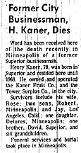 Hank Kaner played ball in the '20's. He was a pitcher, a good one, as good or better than Walter Johnson? Dean said so, or maybe it was his father, or Hank himself who said it first. Cleveland did offer him a contract, but he turned it down because he wouldn't play on Shabbos. And that was it--no fame, no glory, no American dream fulfilled. When he died in 1975 in Minneapolis, the Superior Evening Telegram's brief obituary (4/1/75) fails to mention his aborted baseball career...